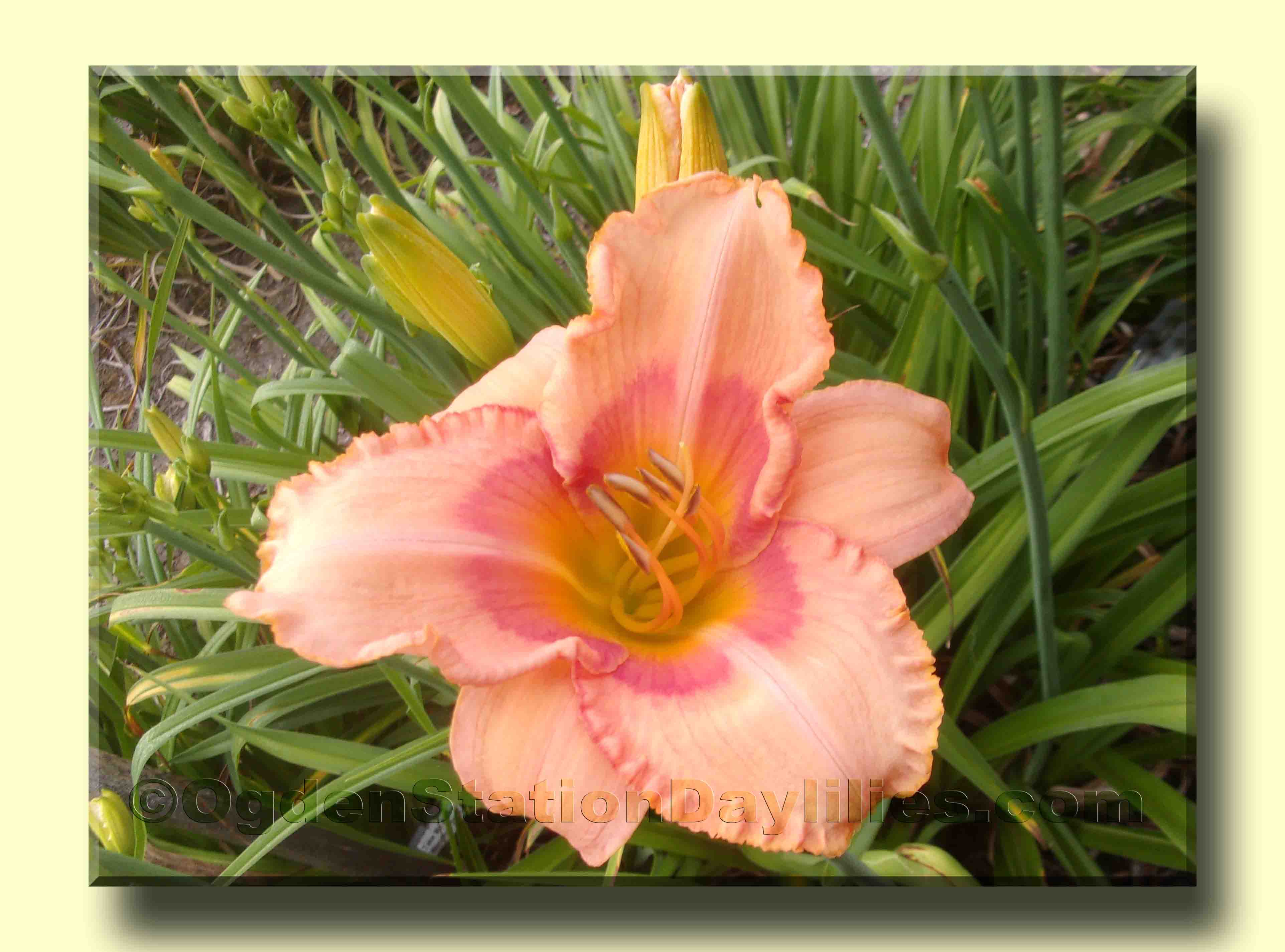 Talk About Ruffles $10 SINGLE FAN Carpenter 1993 Rebloom Fragrant Evergreen 6.5" bloom, 22" height Early Mid Season Diploid